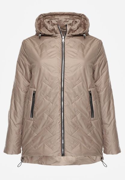 Ciemnobeżowa Przejściowa Kurtka z Pikowanymi Przeszyciami i Odpinanym Kapturem Olunea