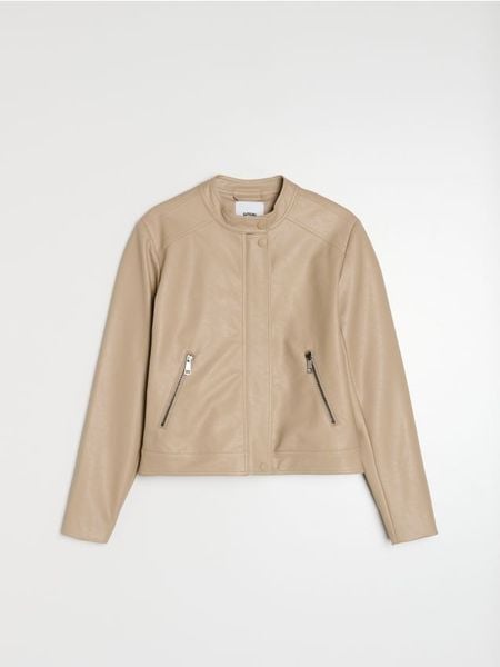 Sinsay – Kurtka biker ze stójką z imitacji skóry – beżowy –