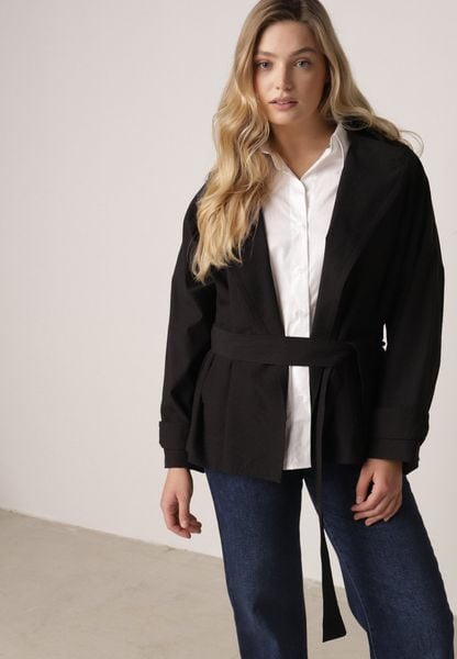 Czarna Bawełniano-Wiskozowa Kurtka Typu Krótki Trencz z Ozdobnym Guzikiem Dafena