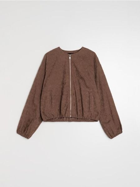 Sinsay – Żakardowa kurtka bomber z haftowanymi kwiatami – brązowy –