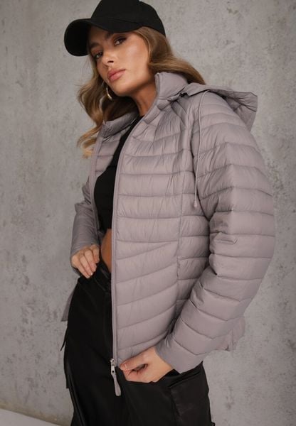 Szara Przejściowa Kurtka Pikowana z Kapturem z Możliwością Odpięcia Pretiga