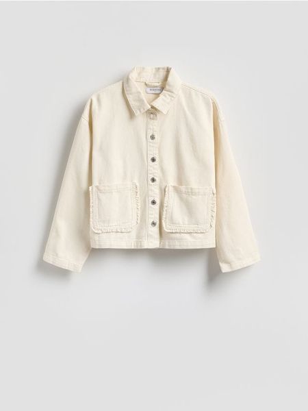 Kurtka o prostym kroju, wykonana z bawełnianego denimu.