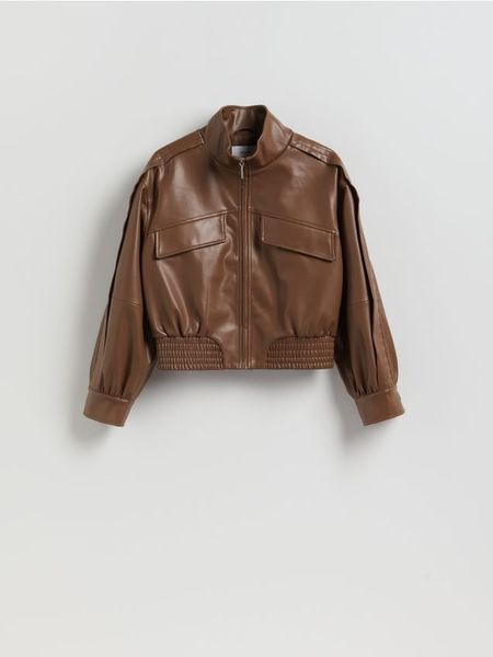Kurtka o swobodnym kroju, wykonana z imitacji skóry.