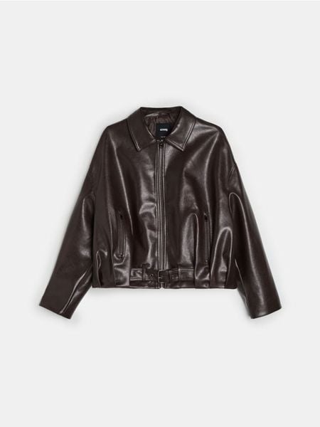 Sinsay – Kurtka bomber z kołnierzykiem z imitacji skóry – brązowy –