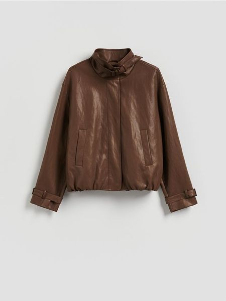 Kurtka o prostym kroju, wykonana z imitacji skóry.