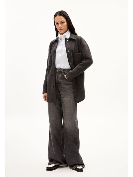 – z bawełny organicznej- z poliamidu pochodzącego z recyklingu- z dodatkiem wełny- kołnierz: kent- zapięcie: zatrzaski- kieszenie piersiowe: 2- krój: luźny- look: jednokolorowy
