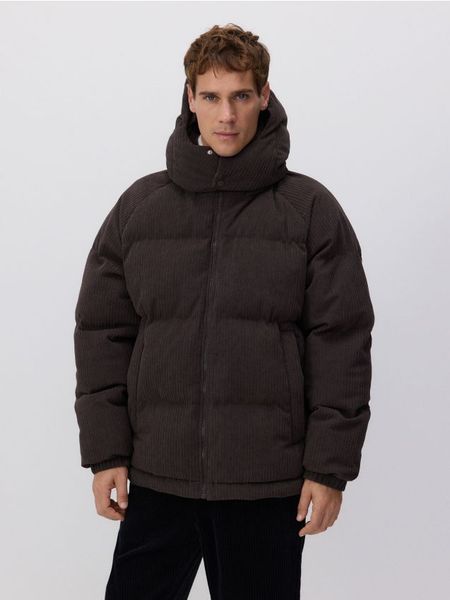 Sztruksowa kurtka z kapturem. – ciemnobrązowy