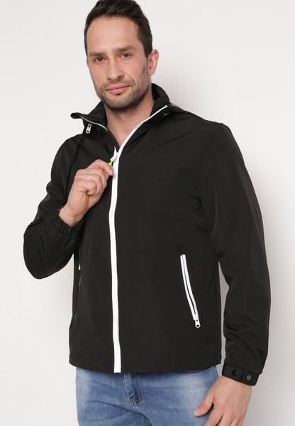 Czarna Kurtka Wiatrówka z Kapturem Schowanym w Kołnierzu Fioratte