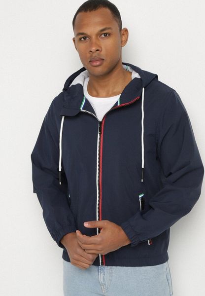 Granatowa Kurtka Wiatrówka z Kapturem i Zasuwanymi Kieszeniami Adivoria