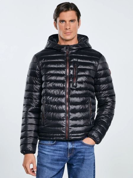 Kurtka męska pikowana z kapturem czarna Horp 906