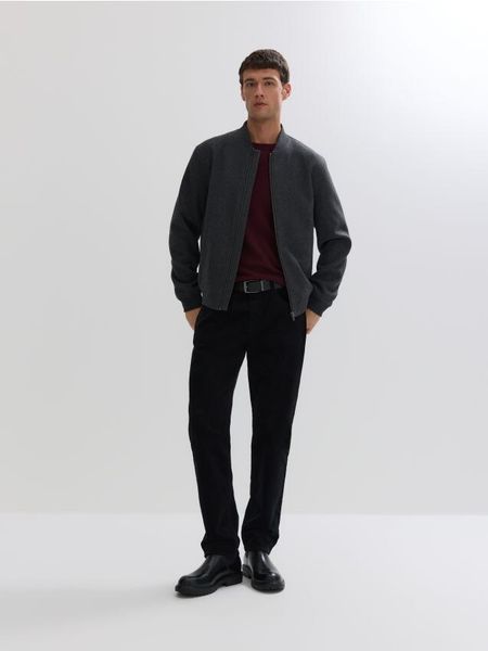 Kurtka o regularnym kroju, wykonana z tkaniny z wełną.