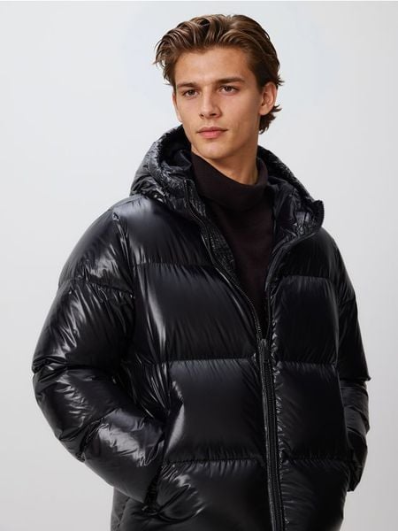 Puchowa kurtka z kapturem – czarny