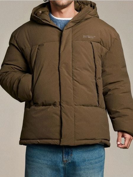 Sinsay – Pikowana kurtka puffer z kapturem – brązowy –