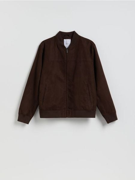 Kurtka typu bomberka, wykonana z imitacji zamszu.