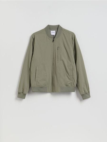 Kurtka typu bomber, wykonana z gładkiego materiału.