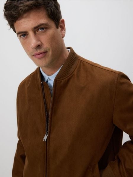 Kurtka bomberka z imitacji zamszu – brązowy