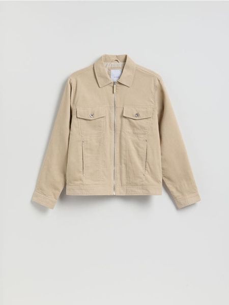 Sztruksowa kurtka z kołnierzem – kremowy