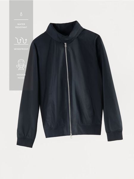 Kurtka typu bomberka, wykonana z tkaniny o podstawowej wodoodporności.