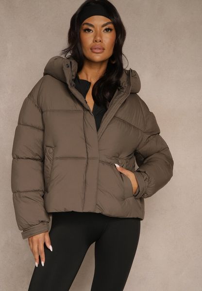 Ciemnozielona Pikowana Kurtka o Pudełkowym Kroju z Kapturem i Ściągaczami Selizola