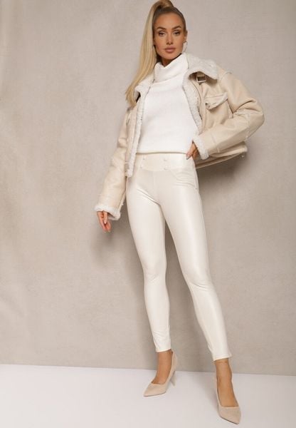 Białe Legginsy Push-Up z Ekoskóry Ocieplone Polarkiem Alabella