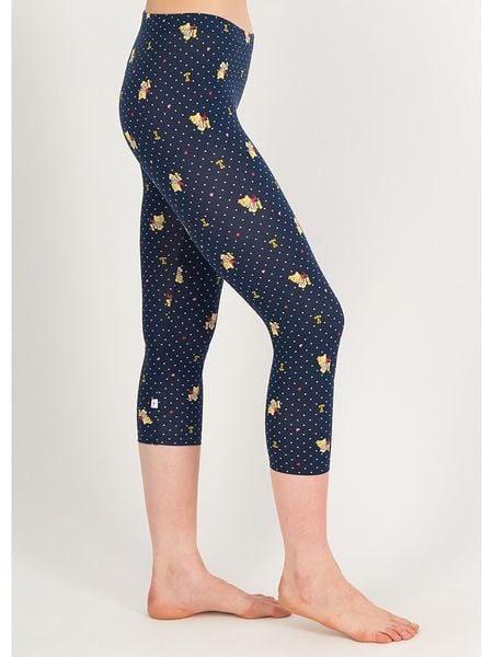 – z bawełny organicznej- pas / ściągacz: elastyczny- długość nogawek: 3/4- krój: wąski- wzór: na całości