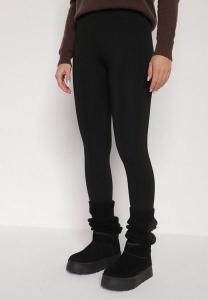 Czarne Gładkie Legginsy z Wysokim Stanem Ociepleniem i Zapiętkami Ferisanna