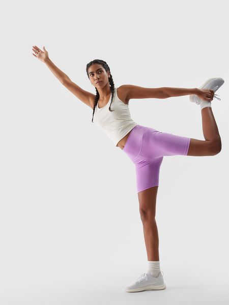 4F Legginsy kolarki treningowe z materiału z recyklingu damskie – fioletowe S