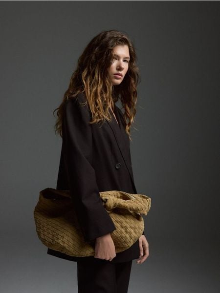 Marynarka o swobodnym kroju, wykonana z tkaniny z wełną.