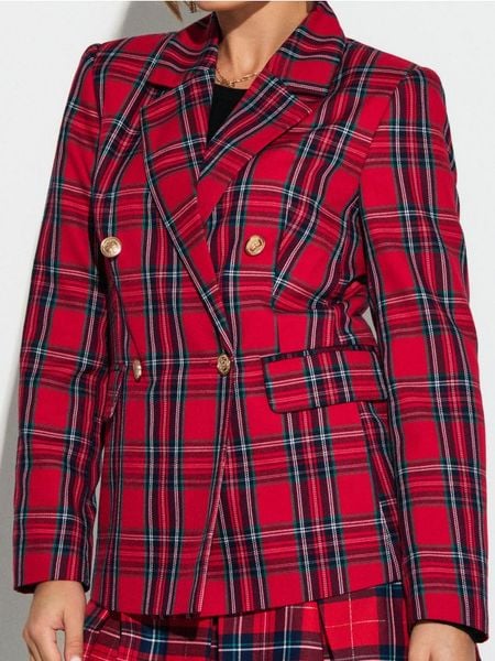 Żakiet w kratę z ozdobnymi guzikami – wielobarwny