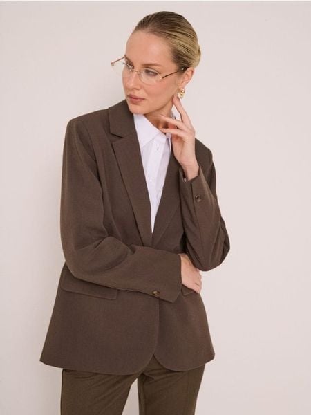 Sinsay – Klasyczna gładka jednorzędowa marynarka z domieszką wiskozy – brązowy –