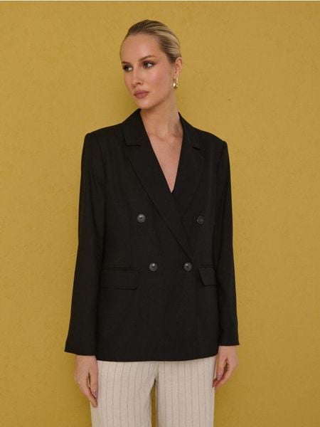 Sinsay – Wiskozowa marynarka dwurzędowa regular fit z domieszką lnu – czarny –