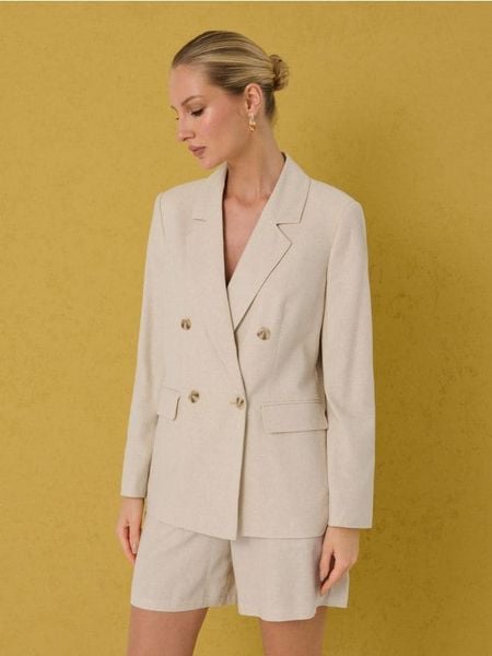 Sinsay – Wiskozowa marynarka dwurzędowa regular fit z domieszką lnu – kremowy –