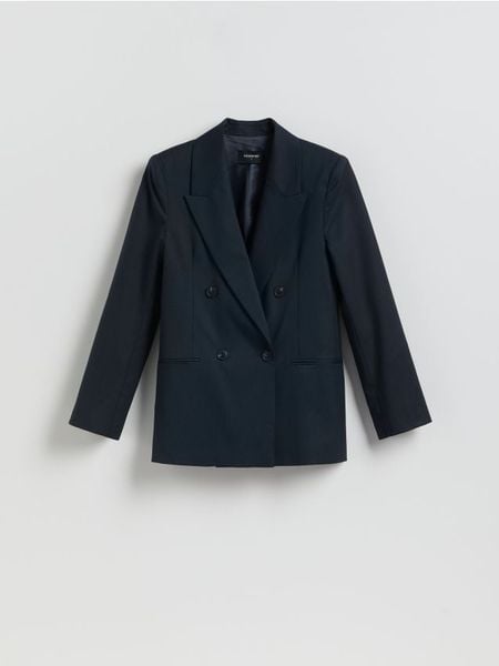 Dwurzędowa marynarka z dodatkiem wełny – granatowy