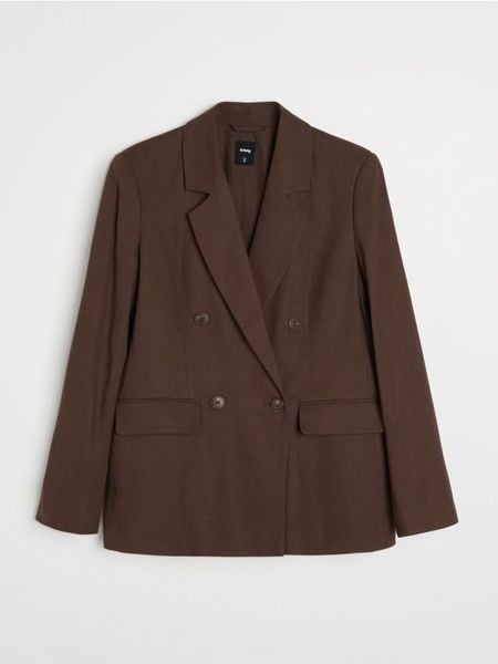 Sinsay – Wiskozowa marynarka dwurzędowa regular fit z domieszką lnu – brązowy –
