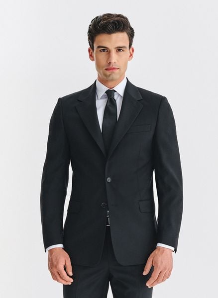 Wełniana marynarka garniturowa – Pako Lorente. Gładka czarna marynarka. Fason: Slim. Skład: 100% wełna. Marynarka garniturowa. Marynarka biznesowa. Jednorzędowa marynarka. Premium.