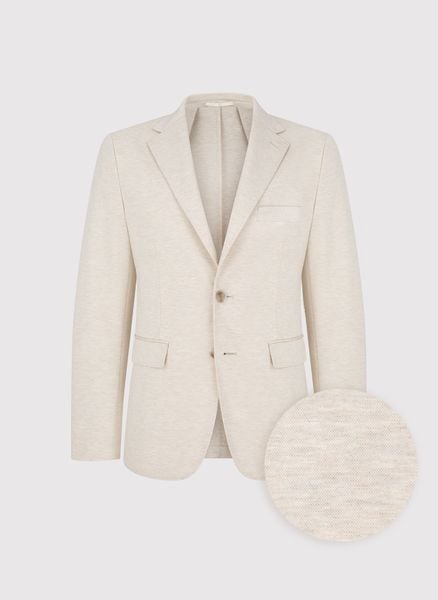 Beżowa marynarka męska – Pako Lorente. Jednorzędowa marynarka męska. Fason Slim. Skład: 76.5% poliester, 17% wiskoza, 6.5% elastan. Marynarka dzianinowa.