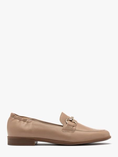 Beżowe mokasyny z miedzianą ozdobą na cholewce