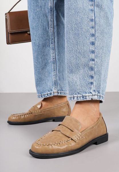 Ciemnobeżowe Mokasyny Vices z Wkładką ze Skóry Naturalnej z Metaliczną Aplikacją Fergia