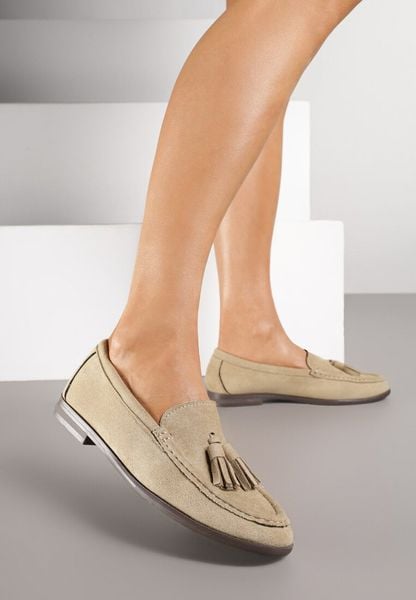 Ciemnobeżowe Mokasyny z Imitacji Zamszu z Aplikacją z Frędzlami Nalonissa