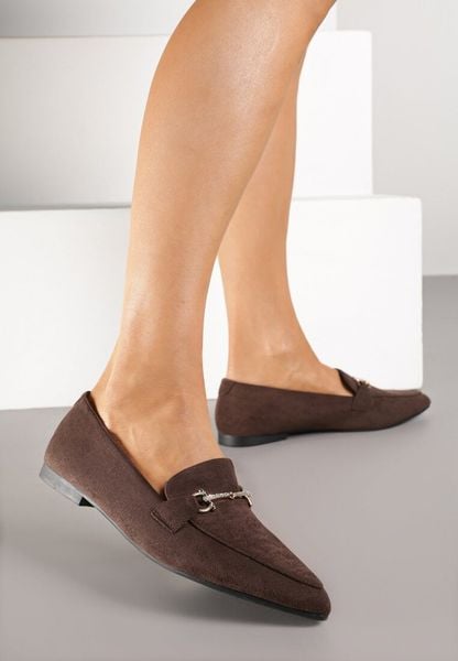 Brązowe Mokasyny Vices ze Szpiczastym Noskiem Zdobione Aplikacją Rilosia