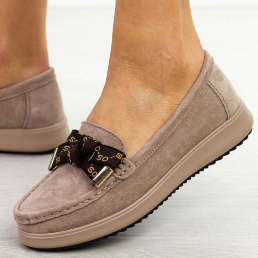 Beżowe skórzane zamszowe mokasyny damskie, półbuty na traperze z łańcuchem Filippo Dp3221/24