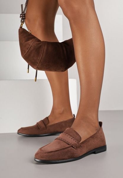 Brązowe Mokasyny Vices ze Skórzaną Wkładką i Ozdobnymi Przeszyciami Adestiia