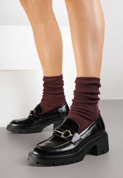 Czarne Mokasyny na Obcasie z Metaliczną Klamrą Eriste