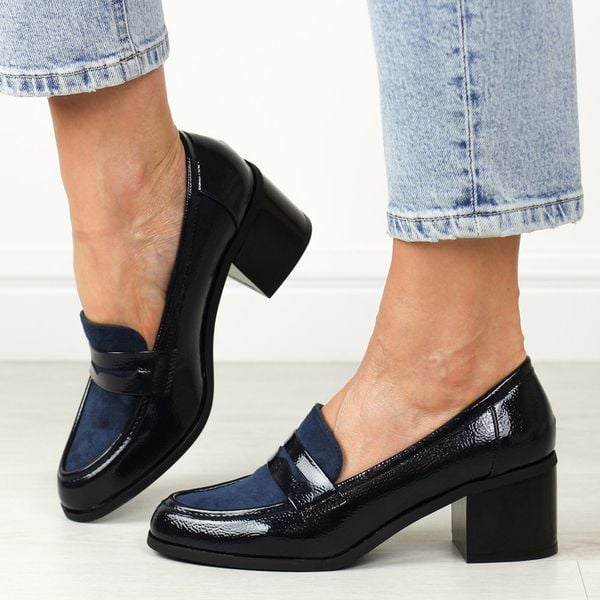 Niebieskie mokasyny damskie na obcasie M.Daszyński 2201D-3A