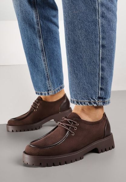Brązowe Półbuty Mokasyny w Stylu Boat Shoes ze Sznurowaniem Balmitar
