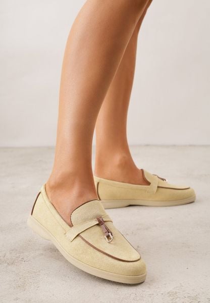 Żółte Mokasyny z Imitacji Zamszu Zdobione Aplikacją z Zawieszkami Peleg