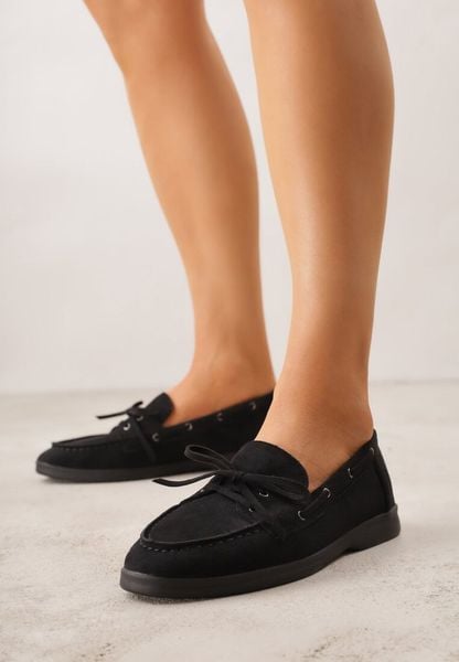 Czarne Mokasyny Ozdobione Wiązaniem Fyrelerris