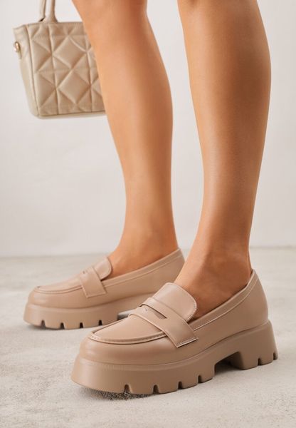 Ciemnobeżowe Mokasyny na Platformie z Tłoczeniem Guinelle