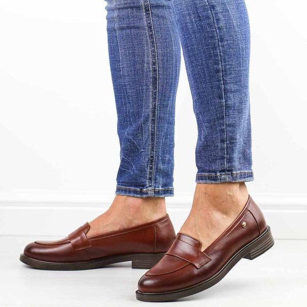 Brązowe skórzane Polskie mokasyny damskie Deoni D610