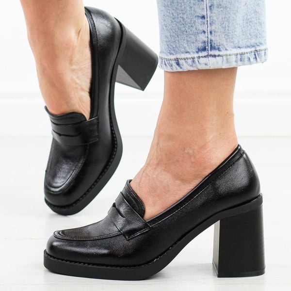 Czarne mokasyny damskie na słupku M.Daszyński 2461-7